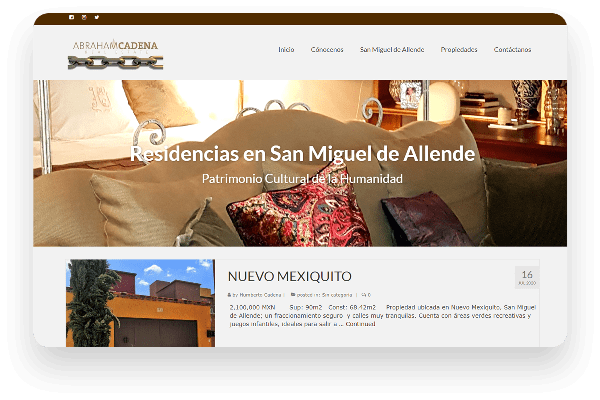 Casos de éxito SAPASMA Club de Golf Malanquin CASA A.C. Funart Decor Perfil LAB® KW Luxury BGA Turquoise Residencial Malanquín Coach Arturo Nava Grupo LR Liliana Felipe Glosas Cerveza Goss Gorditas Estilo Querétaro Pablo Buniak Muzzi Cabrera y Asociados Santos Collection El Urgenciólogo Viñedo Tres Raíces San Miguel Mágico Redes México Psicóloga Fabiola Arellano Pewter Don Quijote Nutriméxico Casa Cariño Abraham Cadena Banquetes Marcela Artesanías Mi México Javier Servín Cerámica Federico Hernández Loca Picó Pastelería Marita Hotel Allende Fantasy Boutique COSIP TV