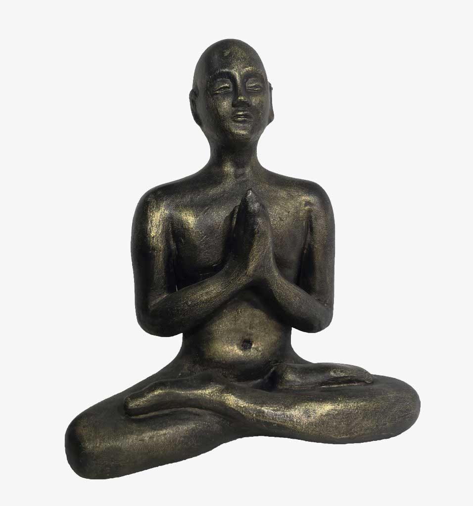 Escultura en barro con patina de bronce en colores diversos. Bella pieza que invita a la reflexión.